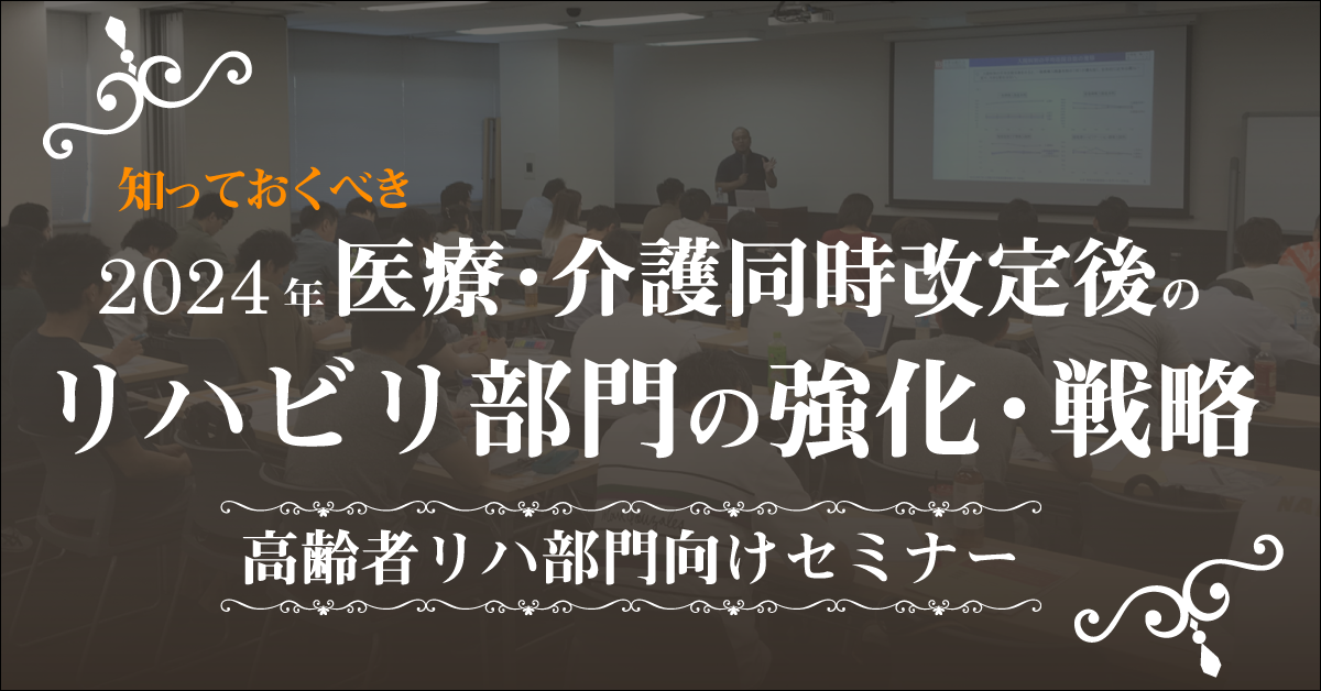 本セミナーでは6月に改定されたリハビリテーション部門に関係する2024年度診療報酬・介護報酬同時改定項目の整理と実際に先進的に取り組まれているリハビリ施設の実践ノウハウをお伝えいたします。